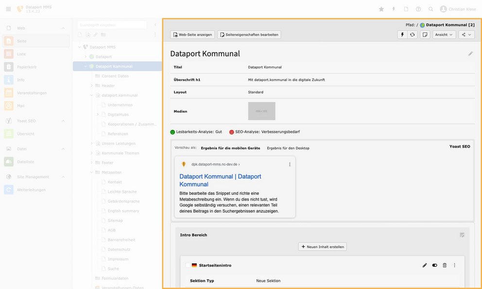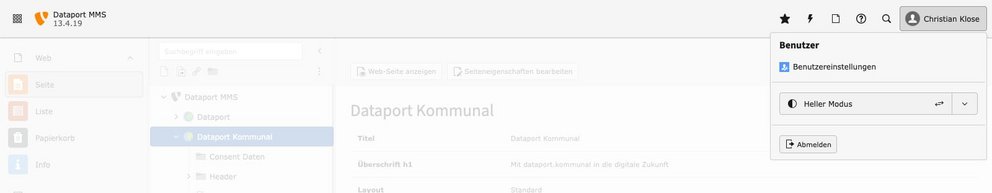 Tipp: Für die Pflege im Mandant dataport.kommunal sollte der Mandant Dataport am besten eingeklappt werden, um Verwechslung zu vermeiden.