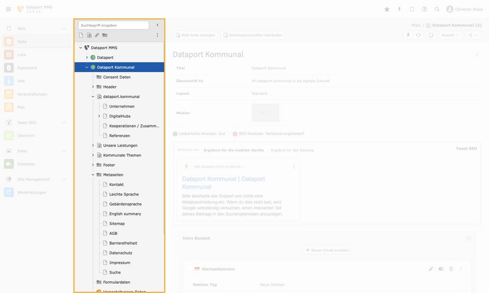 Der Seitenbaum umfasst die komplette Seitenstruktur, also alle Seiten, Ordner und Verweise und gibt die Hierarchie wieder.