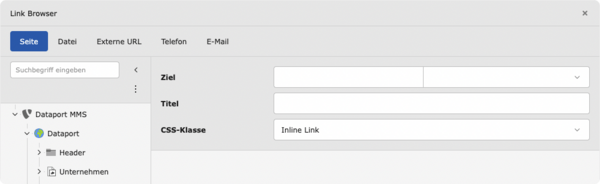 Anschließend öffnet sich ein Pop-Up, in dem Ihnen verschiedene Link-Arten zur Verfügung stehen.