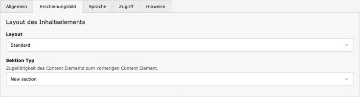 - Belassen Sie die Option „New section“ im Dropdown „Sektion Typ“.
