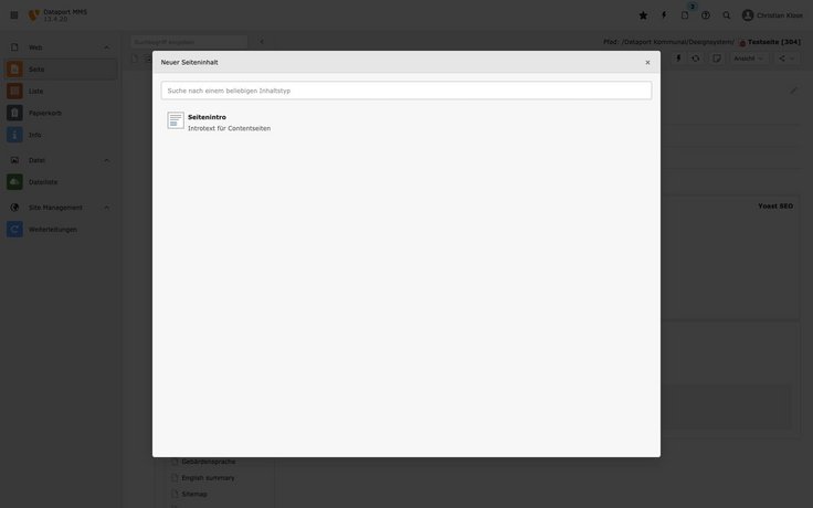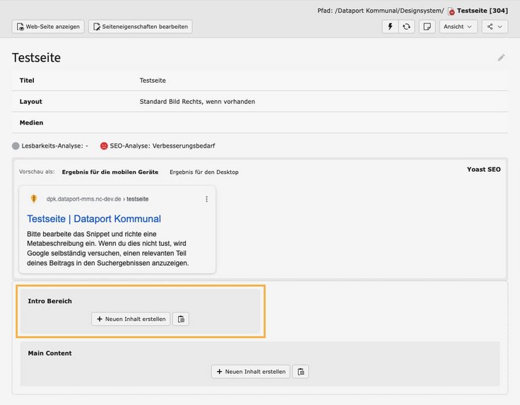 Klicken Sie dazu an der entsprechenden Stelle auf den Button „Neuen Inhalt erstellen“.