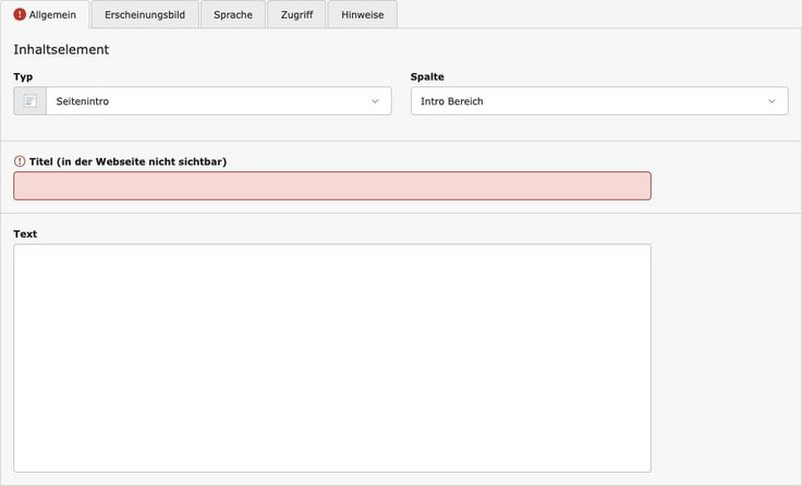 - Geben Sie Text ein, der als Introtext auf der Seite ausgegeben werden soll.