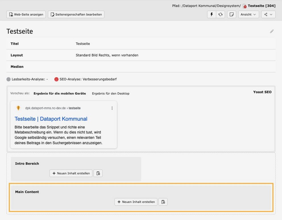 Pflegen Sie Ihre Inhalte je nach Inhaltselement ein.
