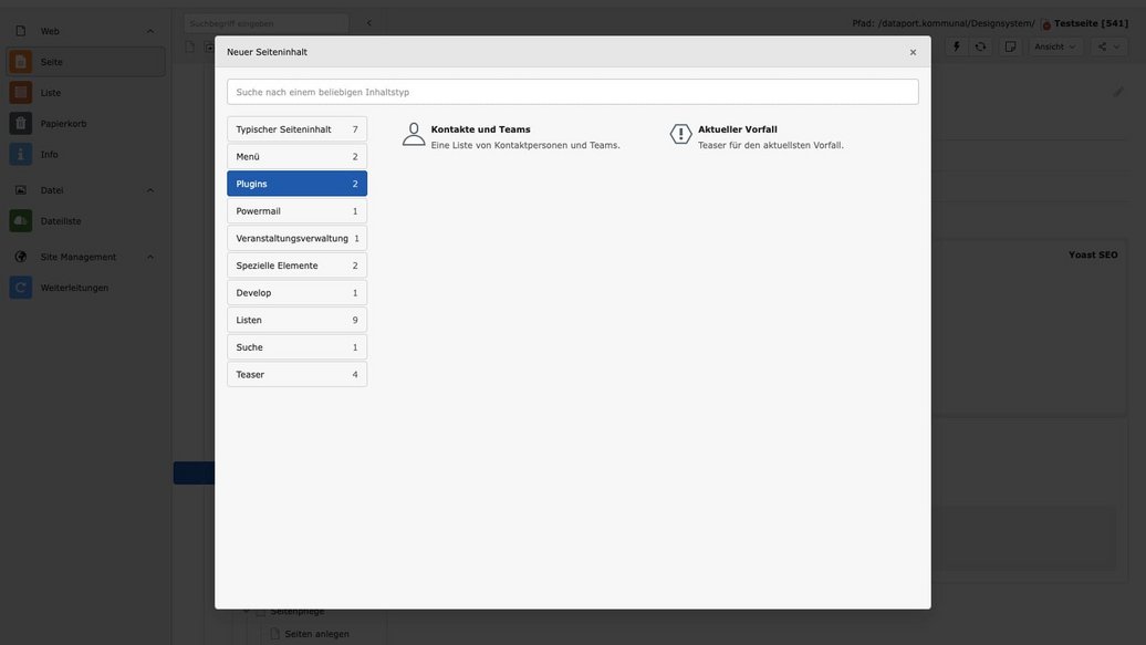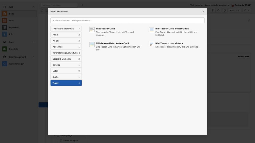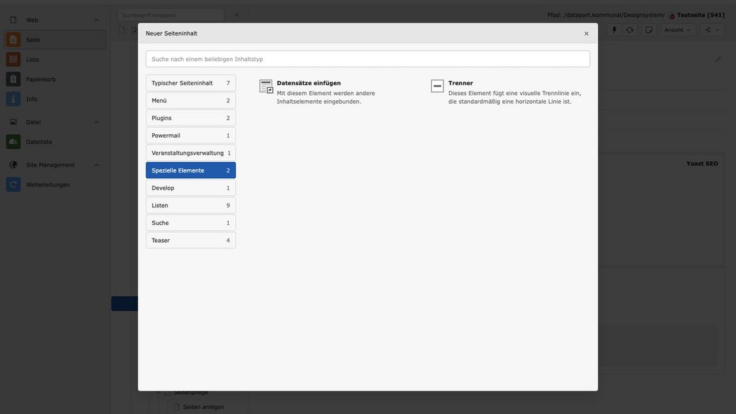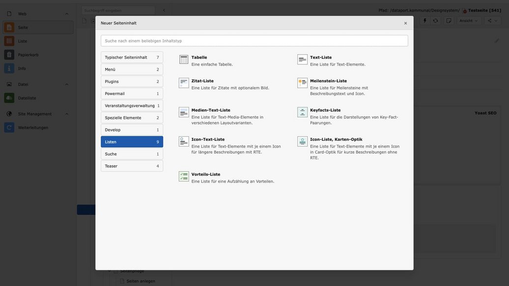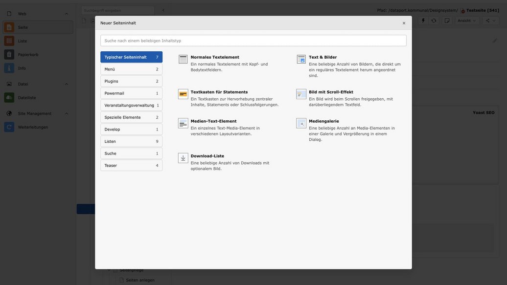 Wählen Sie im aufgegangenen Popup ein Inhaltselement, das Ihren Anforderungen entspricht.