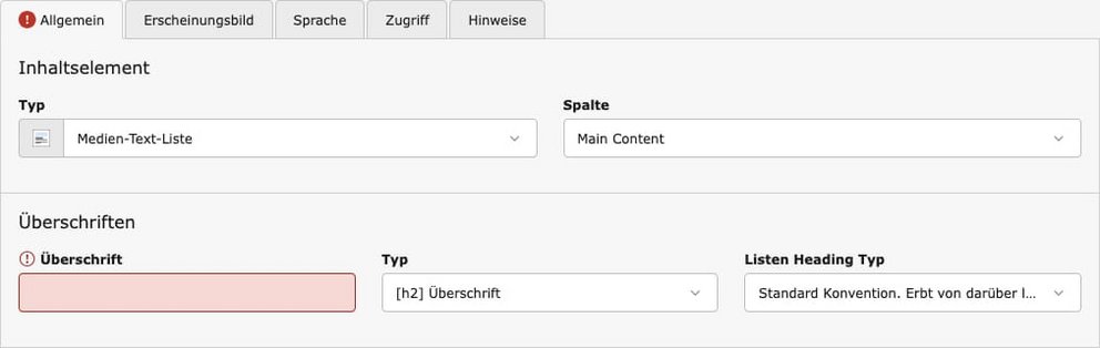 Im Folgenden zeigen wir Ihnen die relevanten Reiter und Pflegemöglichkeiten, die bei allen Inhaltselementen gleich oder zumindest ähnlich sind.