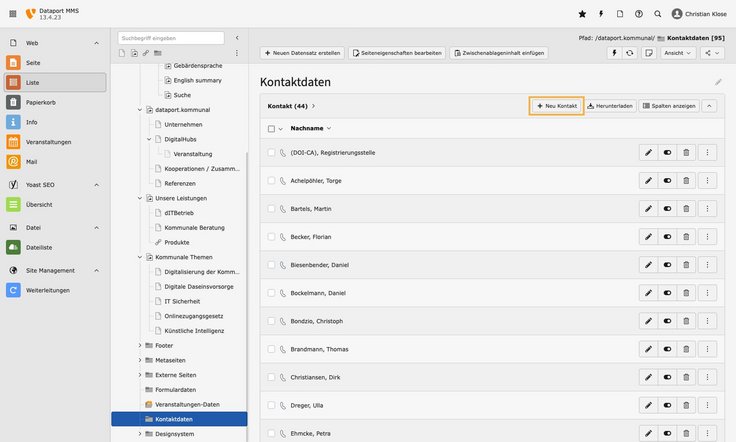 Kontakte sind Personen, d.h. Mitarbeitende von dataport.kommunal und Teams. Kontakte werden als Datensätze gepflegt.