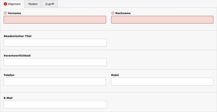 - „Vorname“ und „Nachname“ sind Pflichtfelder und müssen ausgefüllt werden.