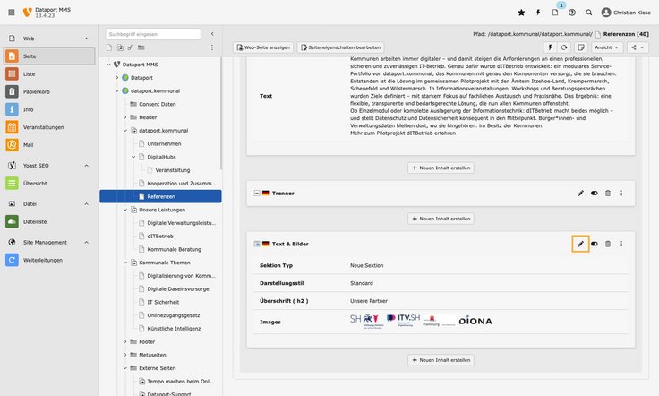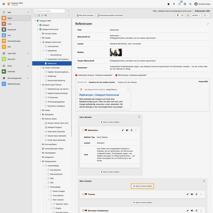 - Klicken Sie im Seitenbaum auf die Seite „Referenzen“ unter „dataport.kommunal“.